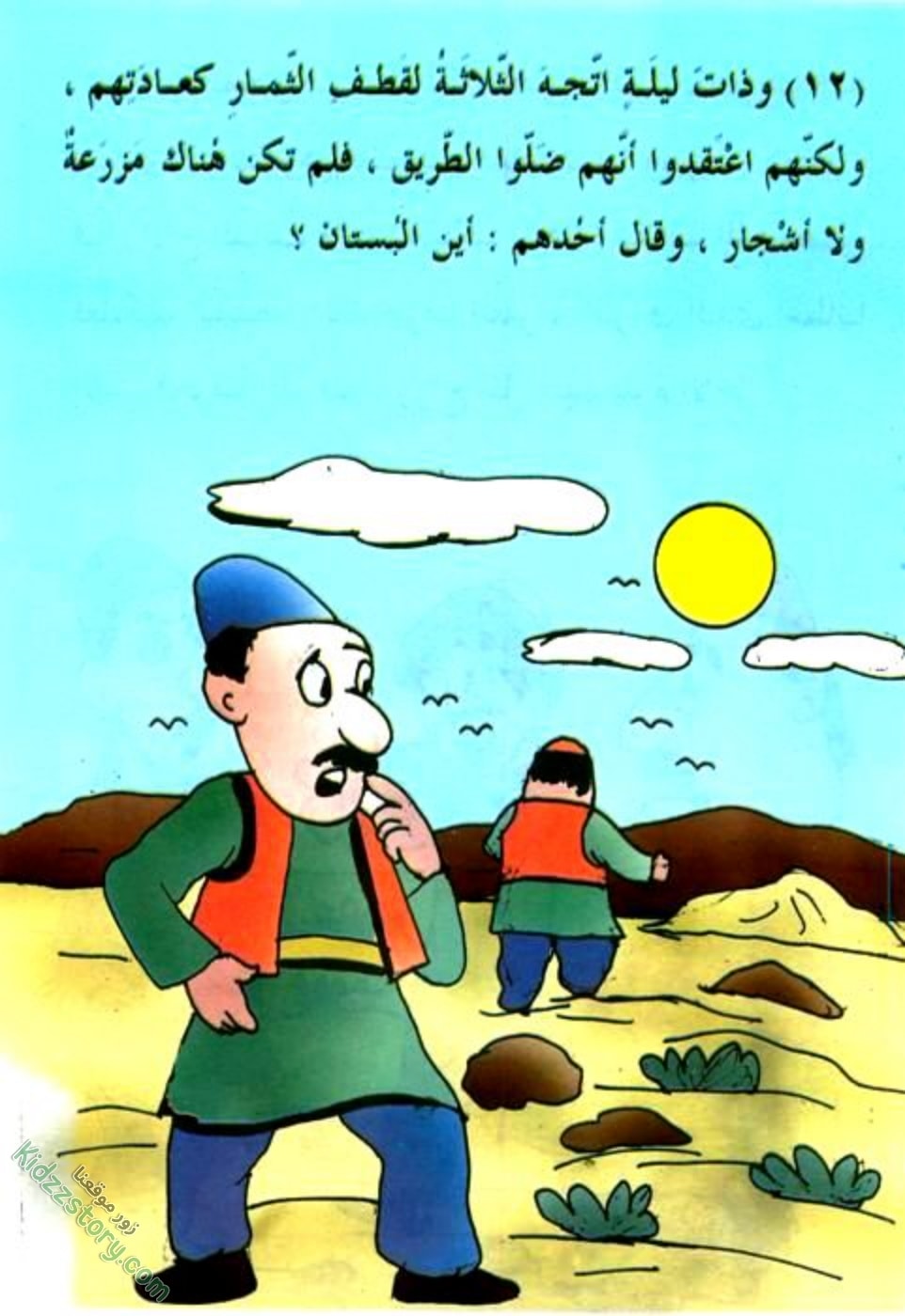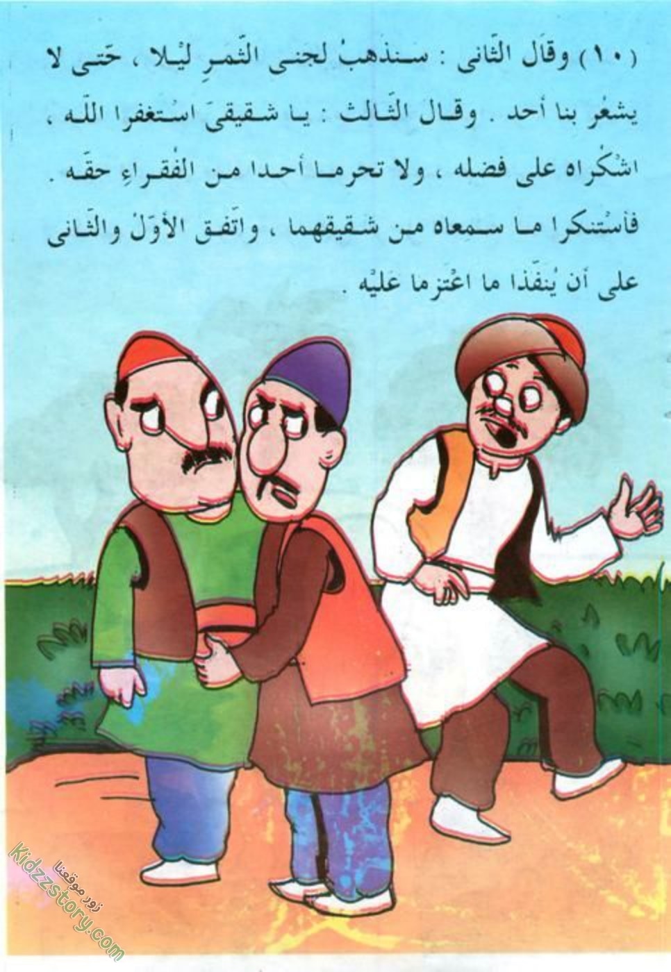 وقال الثاني: سنذهب لجني الثمر ليلا، حتى لا يشعر بنا أحد.
