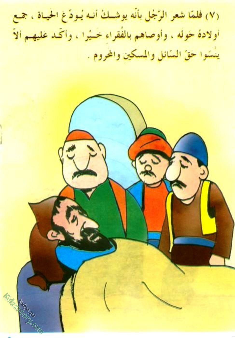 فلما شعر الرجل بأنه يوشك أن يودع الحياة، جمع أولاده حوله، وأوصاهم بالفقراء خيرا، وأكد عليهم ألا ينسوا حق السائل والمسكين والمحروم.