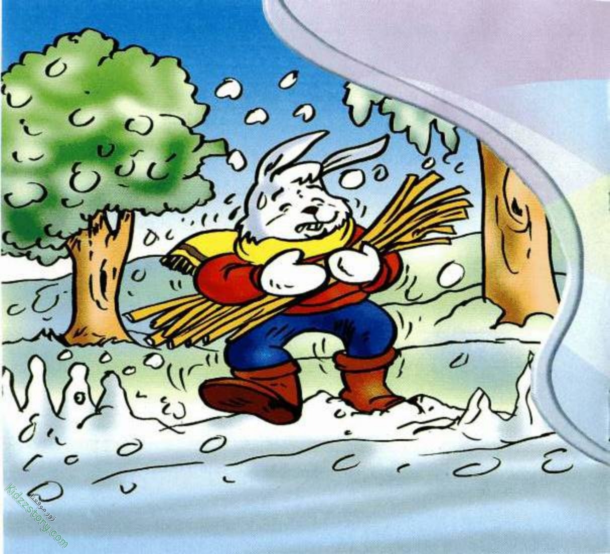 مرت الأيام والوضع كما هو، إلى أن اشتد البرد وزاد سقوط الثلج. وبينما كان الأرنب في الخارج يبحث عن الحطب، أصابه برد شديد حتى كاد يتجمد، لكنه تحمل بصعوبة إلى أن وصل إلى الكوخ وهو يرتجف.