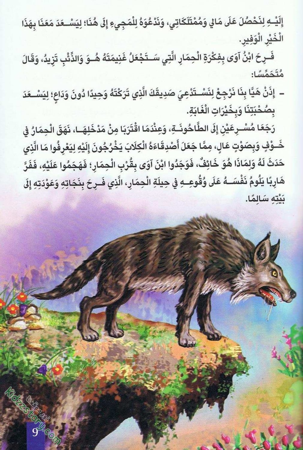 فرح ابن آوى بفكرة الحمار التي ستجعل غنيمته هو والذئب تزيد، وقال: