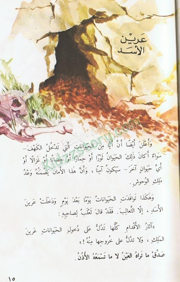 وهكذا توافدت الحيوانات يوما بعد يوم ودخلت عرين الأسد، إلا الثعالب. فقد قال ثعلب لصاحبه: آثار الأقدام كلها تدل على دخول الحيوانات عرين الملك، ولا تدل على خروجها منه!