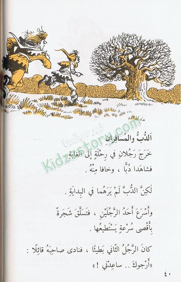 أسرع أحد الرجلين، فتسلق شجرة بأقصى سرعة يستطيعها.