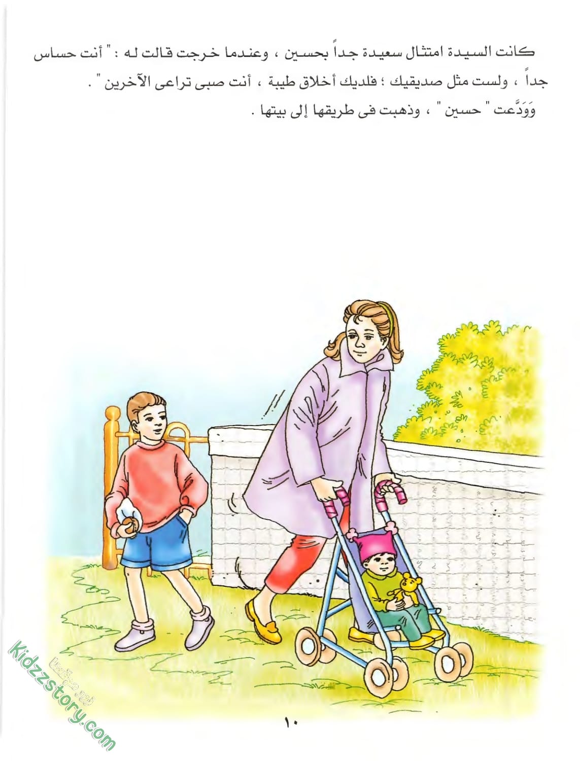 كانت السيدة امتثال سعيدة جدًا بحسين، وعندما خرجت قالت له: