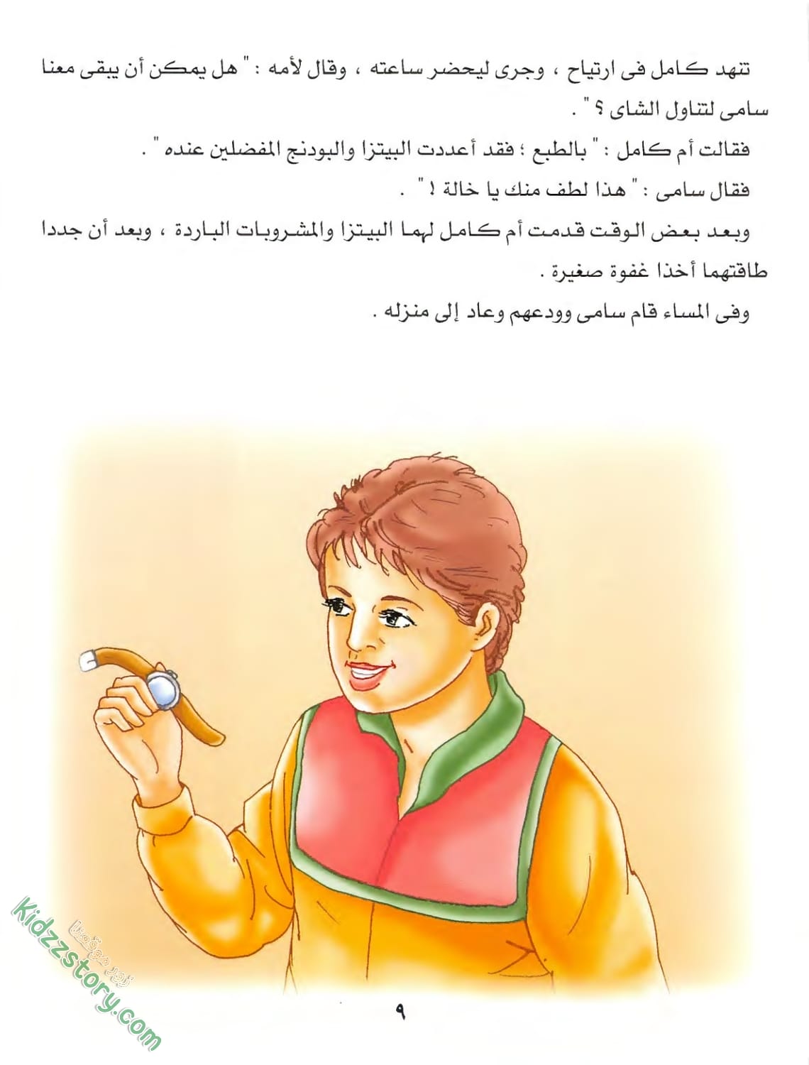 تنهد كامل في ارتياح، وجرى ليحضر ساعته، وقال لأمه: “هل يمكن أن يبقى معنا سامي لتناول الشاي ؟”.