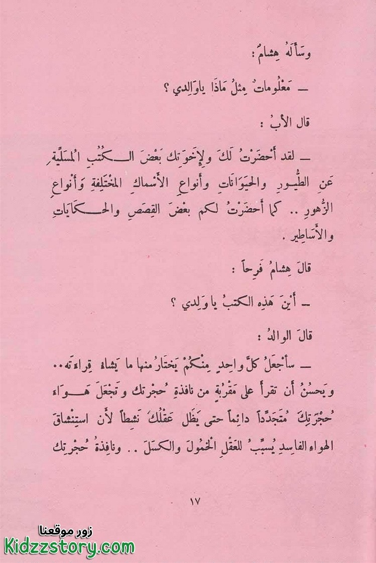 وراح هشام يقرأ القصص حتى قرأ قصة عجيبة، فجمع إخوته وقال لهم: