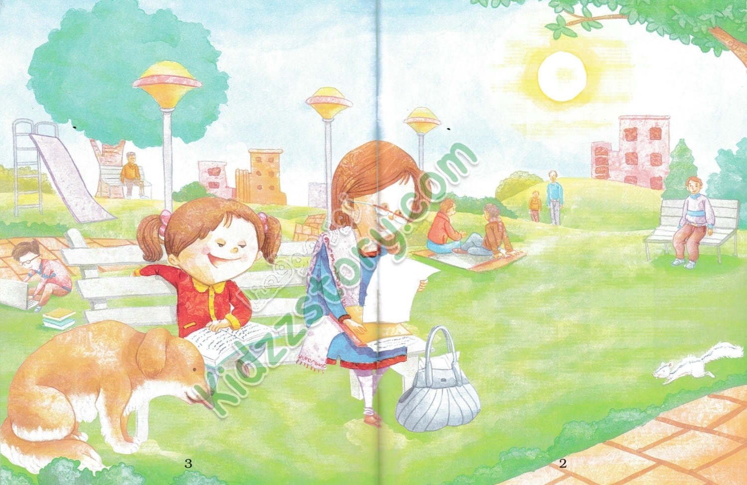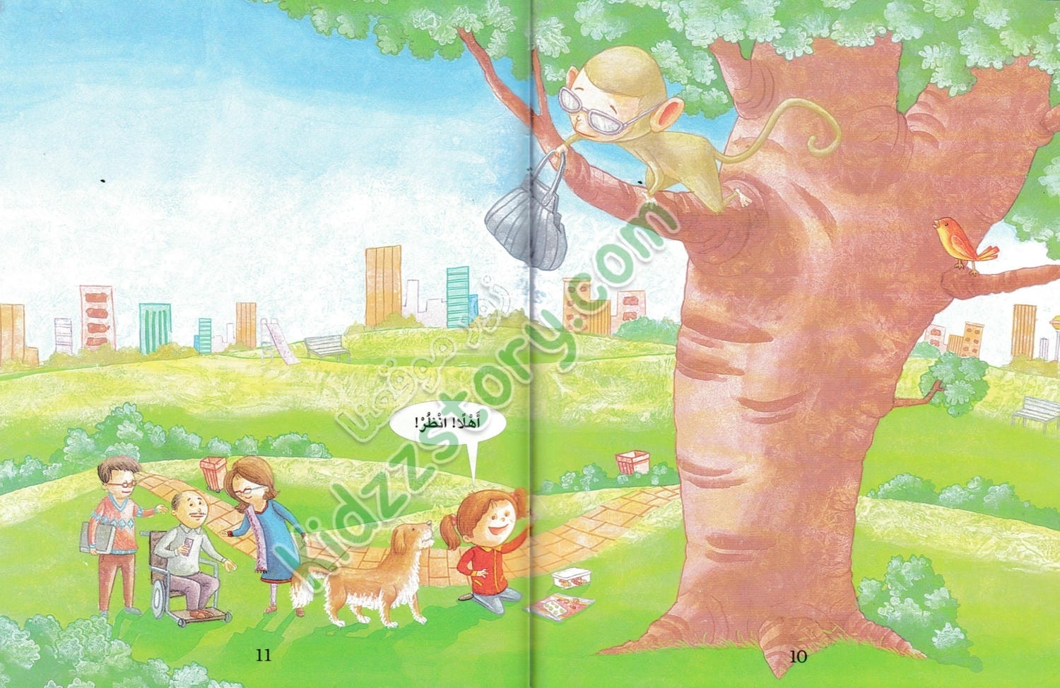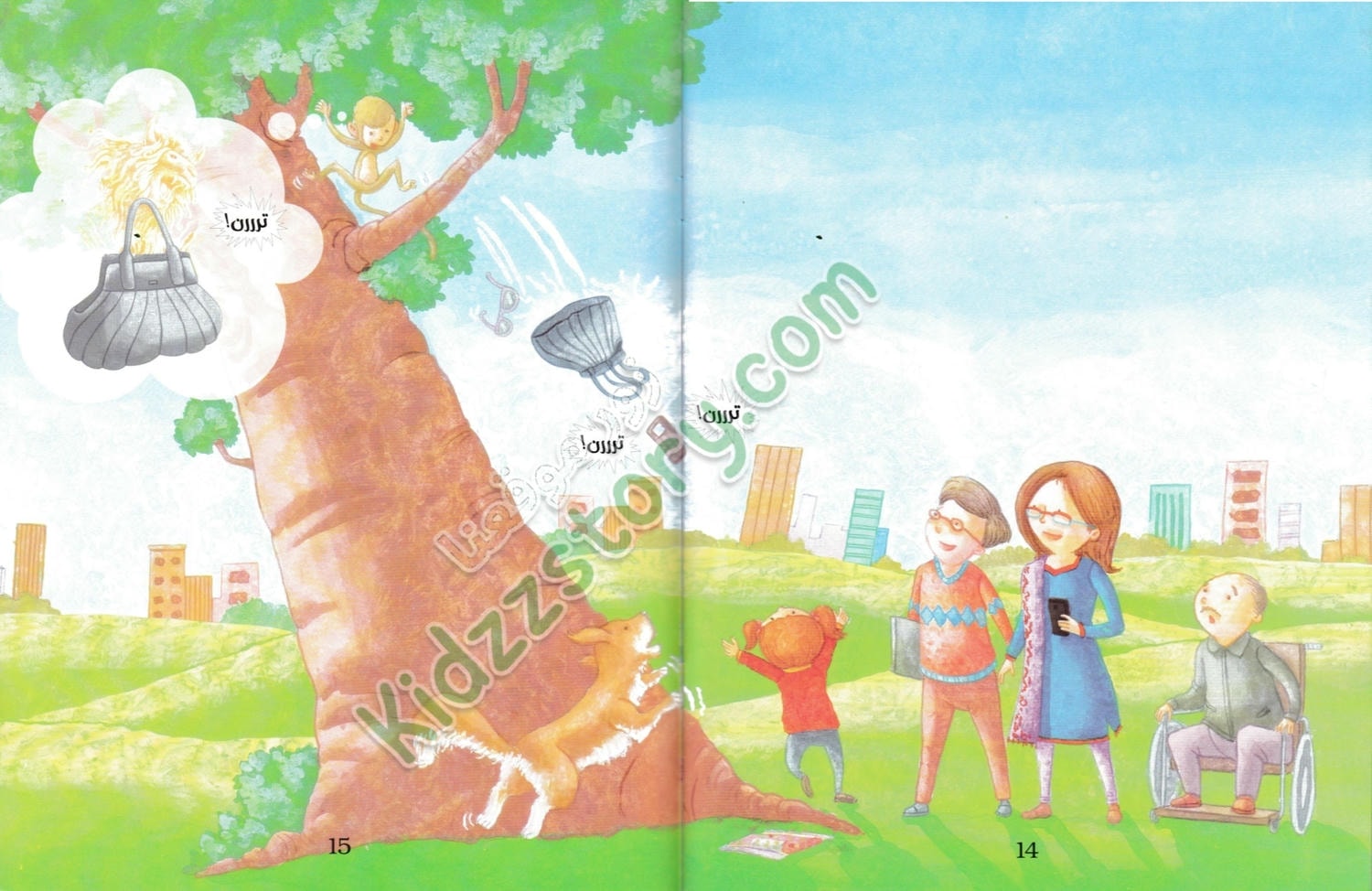 في صباح يوم شتوي بارد، كانت ميمي تجلس مع أمها وكلبها توبي في المتنزه. الجو كان لطيفًا رغم البرودة، وكانت الأشجار عارية من أوراقها ما عدا القليل الذي بقي معلقًا في الفروع. فجأة، قفز توبي من مكانه وركض بعيدًا، وهو يحمل حقيبة الأم في فمه. صدمت ميمي وبدأت تلاحقه مسرعة، متعجبة من تصرف توبي المفاجئ.