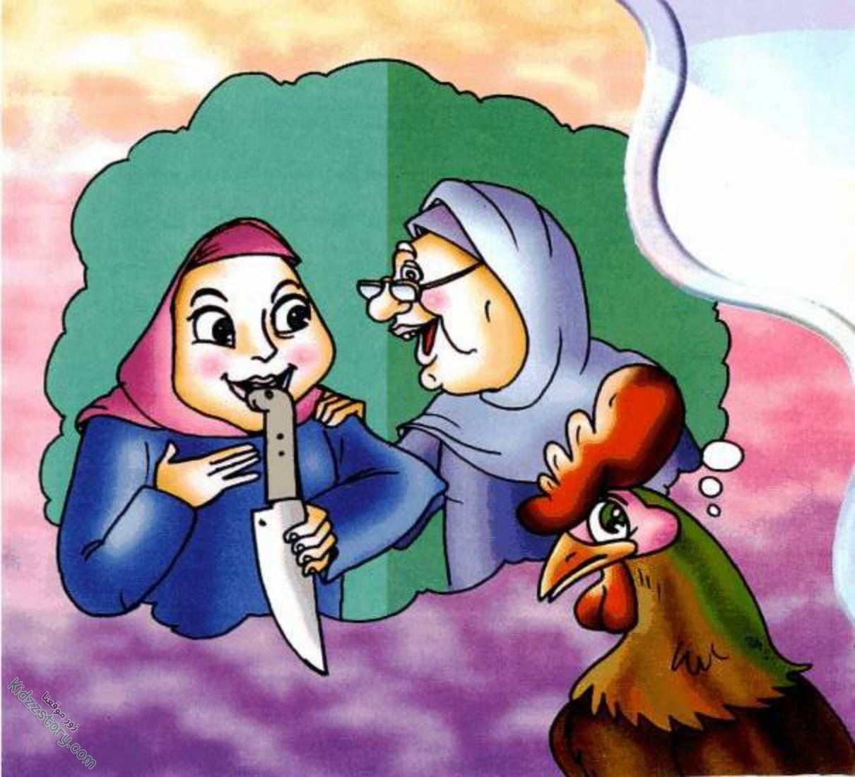 فقالت فرحة: “لقد انتصرت أخيرا! لقد أذن الديك اللئيم وحل ذبحه كما قالت أمي. ستذوق اليوم شوربة الديك ولحمه الطري.”