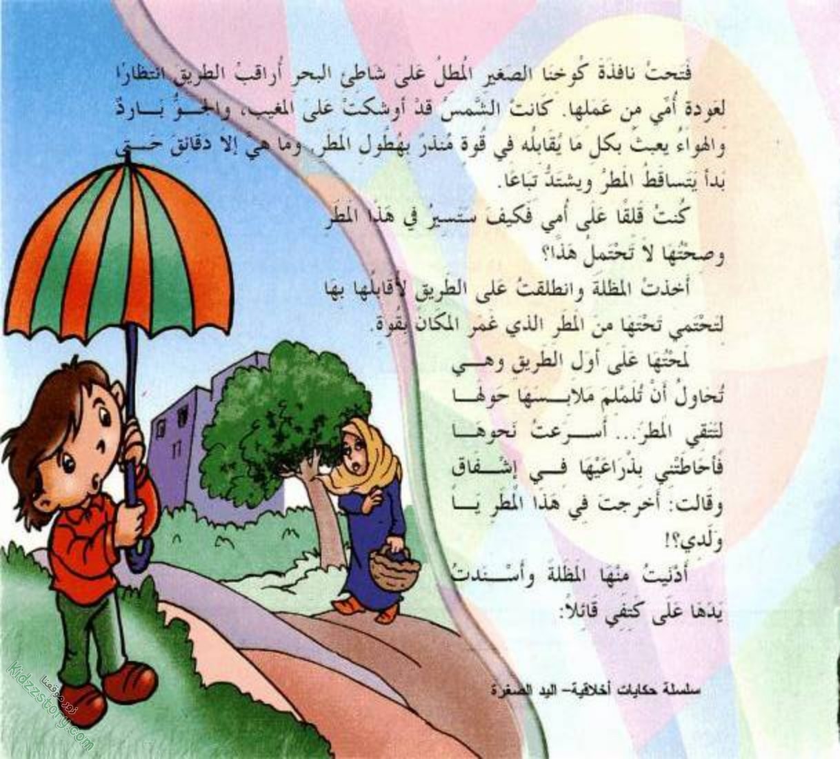 أدنيت منها المظلة وأسندت يدها على كتفي قائلا: “راحتك هي راحتي يا أمي، فقد كنت قلقا لتأخرك اليوم.”