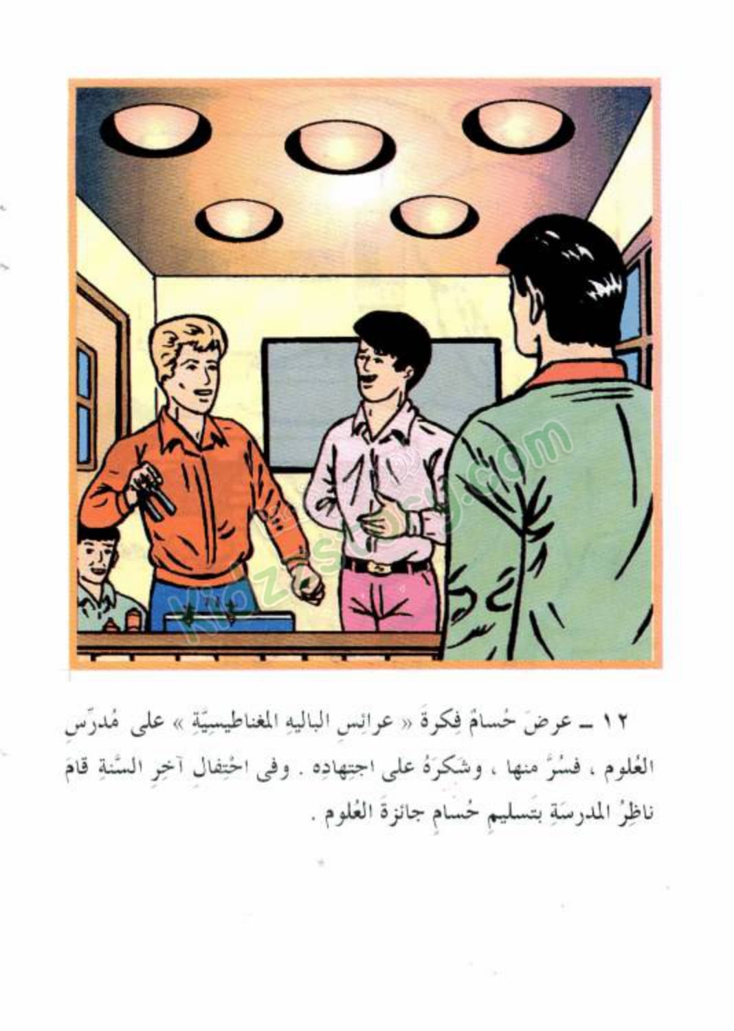 عرض حسام فكرة “عرائس الباليه المغناطيسية” على مدرس العلوم، فسُرّ منها، وشكره على اجتهاده. وفي احتفال آخر السنة، قام ناظر المدرسة بتسليم حسام جائزة العلوم.
