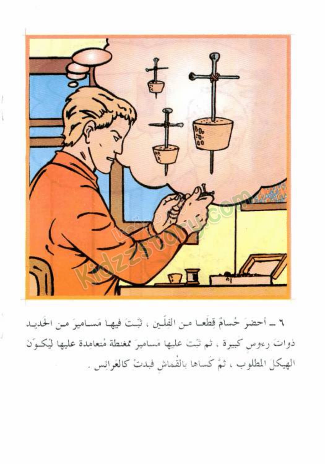 عاد حسام من المدرسة، وقد تكونت في رأسه فكرة أن يُطبق الدرس الذي شرحه المدرس اليوم. ففكر في عمل لعبة سماها “عرائس الباليه المغناطيسية”. أحضر حسام قطعًا من الفلين، ثبت فيها مسامير من الحديد ذوات رؤوس كبيرة. ثم ثبت عليها مسامير ممغنطة متعامدة عليها ليكون الهيكل المطلوب، ثم كساها بالقماش فبدت كالعرائس.