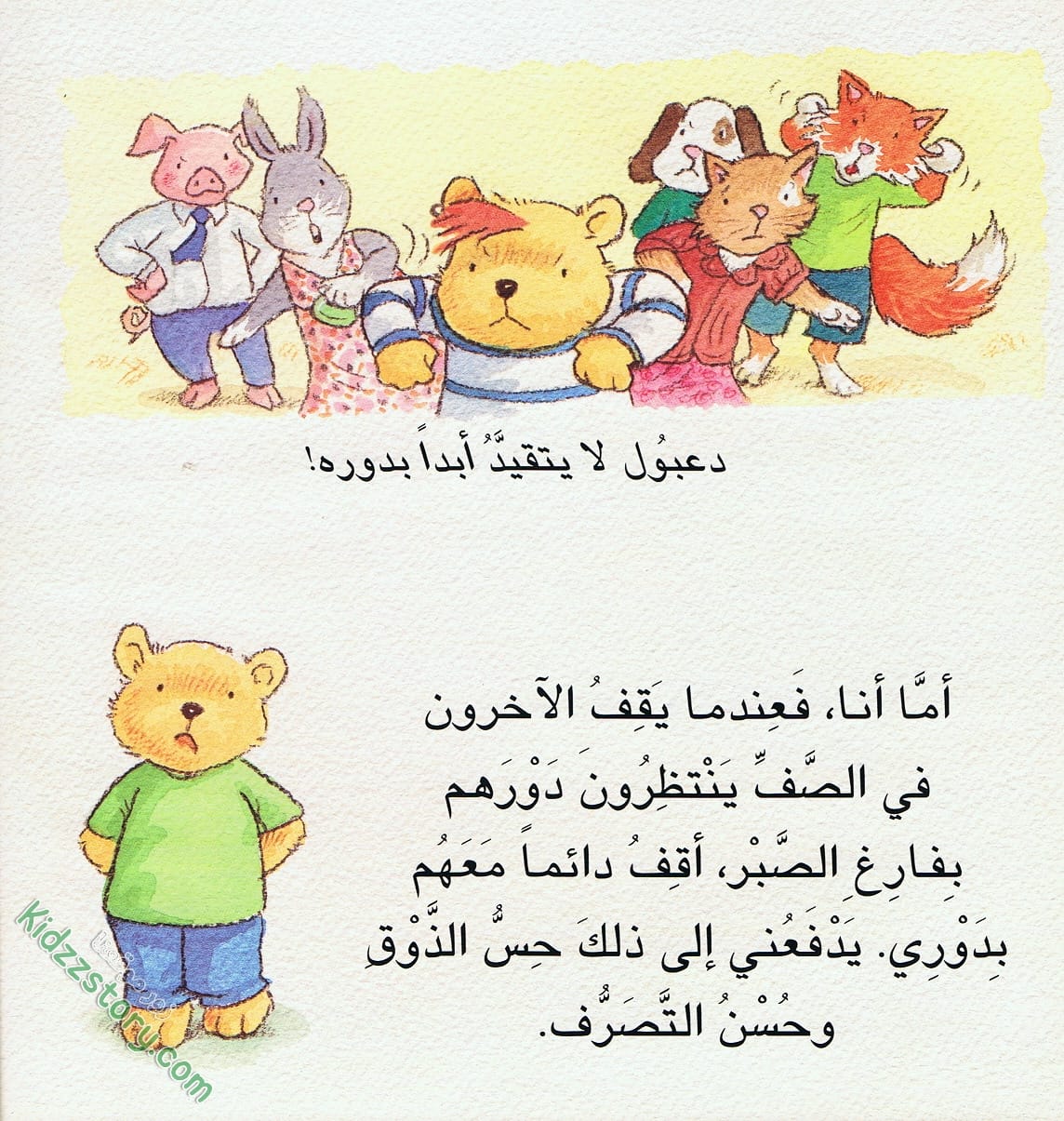 دعبول لا يتقيد أبدا بدوره! أما أنا، فعندما يقف الآخرون في الصف ينتظرون دورهم بفارغ الصبر، أقف دائما معهم بدوري. يدفعني إلى ذلك حس الذوق وحسن التصرف.
