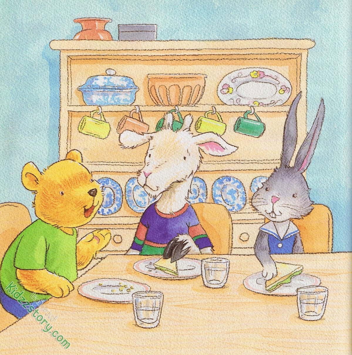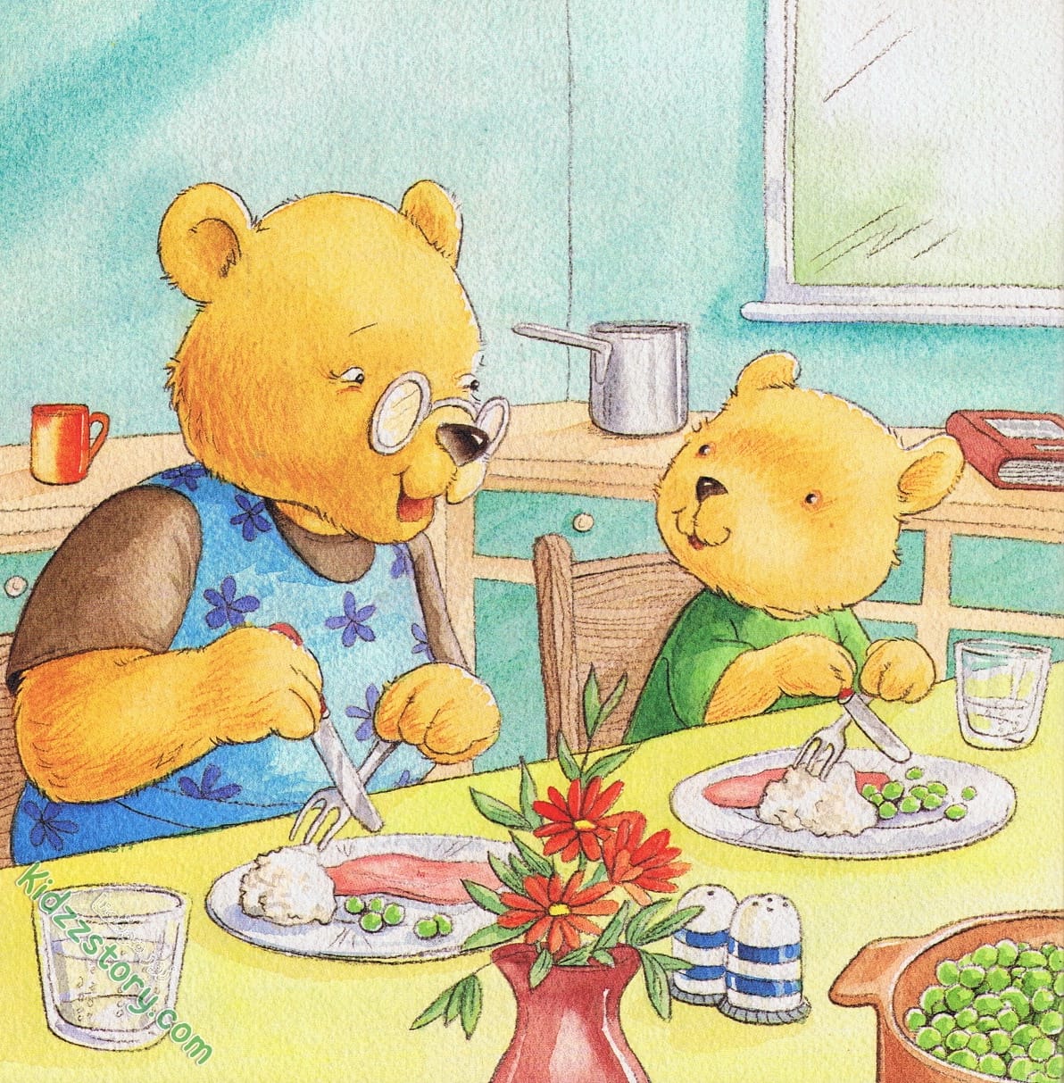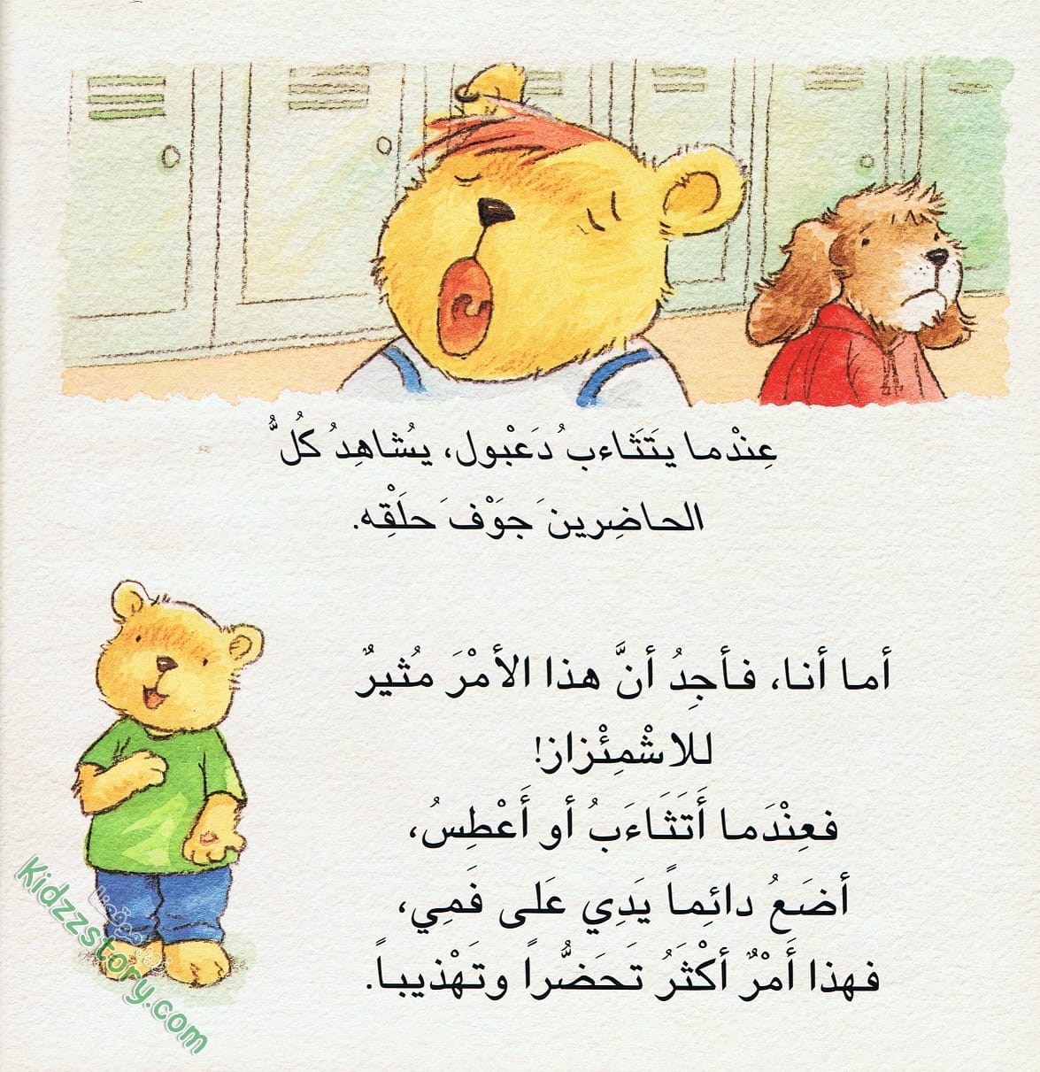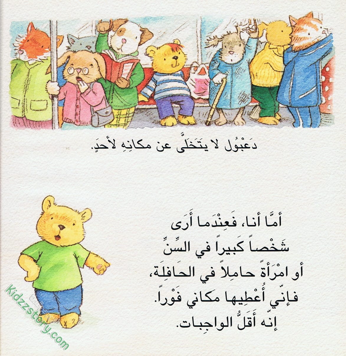 الدب دعبول لا يلقي التحية على أحد. أما أنا، فحين ألتقي بصديق أو شخص أعرفه، أقول له دائما بطريقة ودودة «صباح الخير»، وعندما أهم بالمغادرة، أقول له «إلى اللقاء».