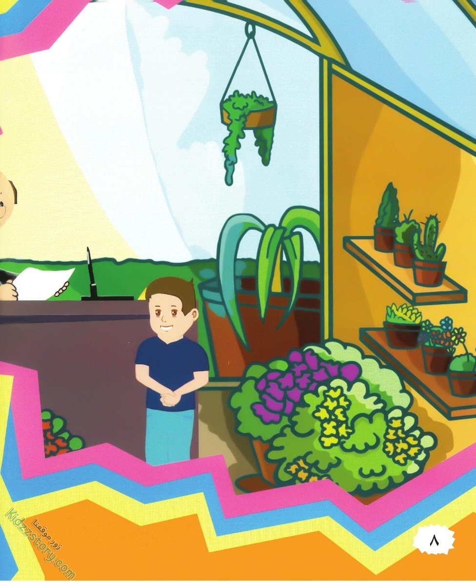 والد زياد عامل نشيط يعمل في مشتل للزهور. يزرع البذور ويسقي الشتلات.