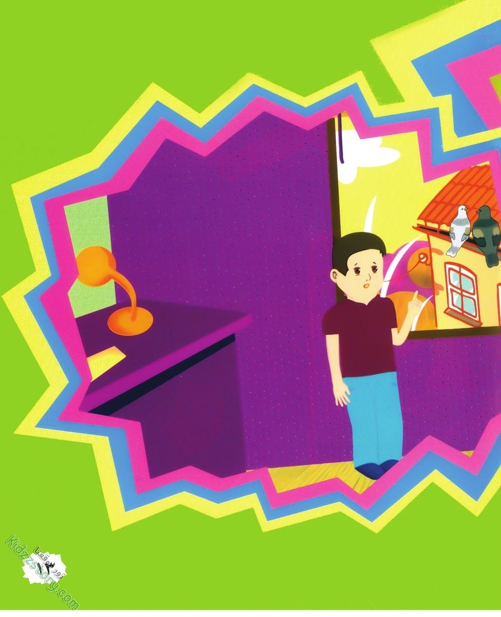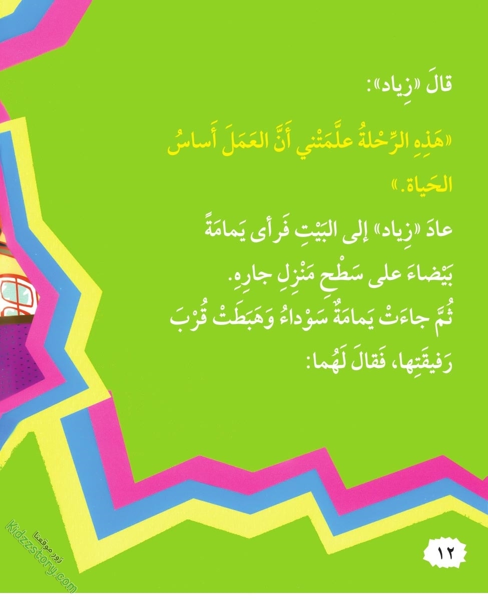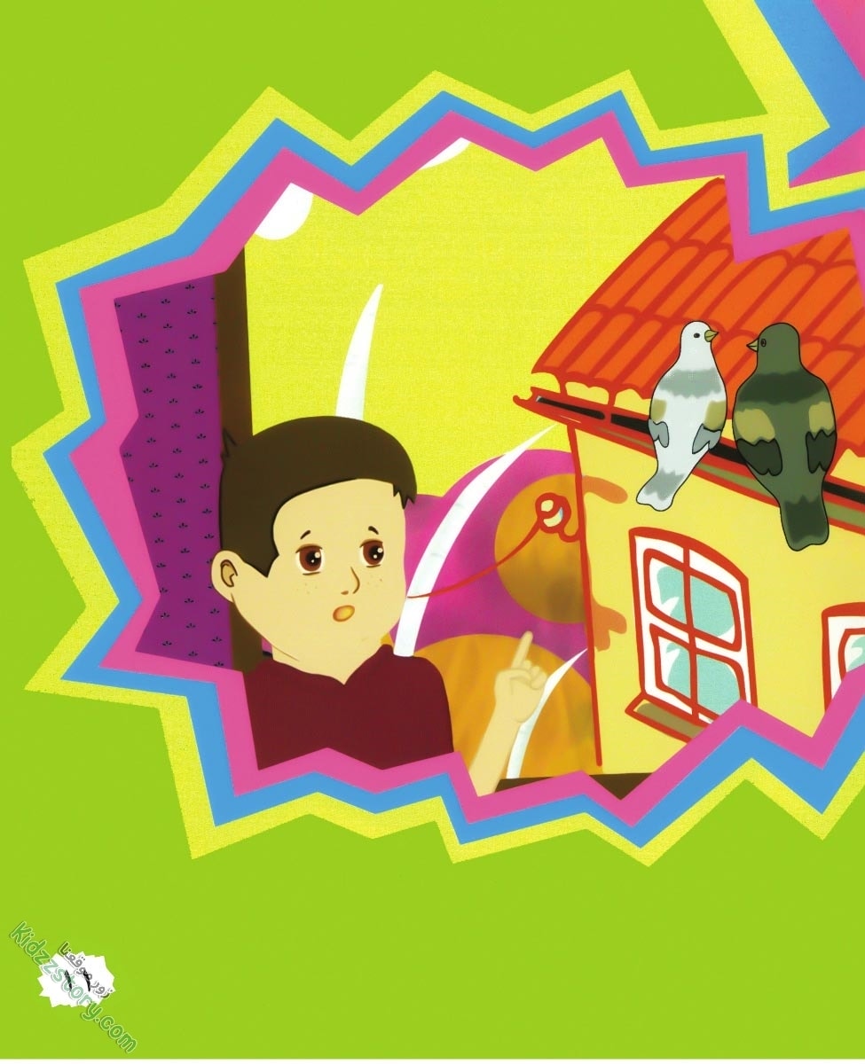 عاد زياد إلى البيت فرأى يمامة بيضاء على سطح منزل جاره. ثم جاءت يمامة سوداء وهبطت قرب رفيقتها، فقال لهما: