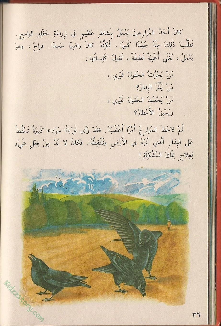 ثم لاحظ المزارع أمرا أغضبه. فقد رأى غربانا سوداء كبيرة تسقط على البذار الذي نثره في الأرض وتلتقطه. فكان لا بد من فعل شيء لعلاج تلك المشكلة!