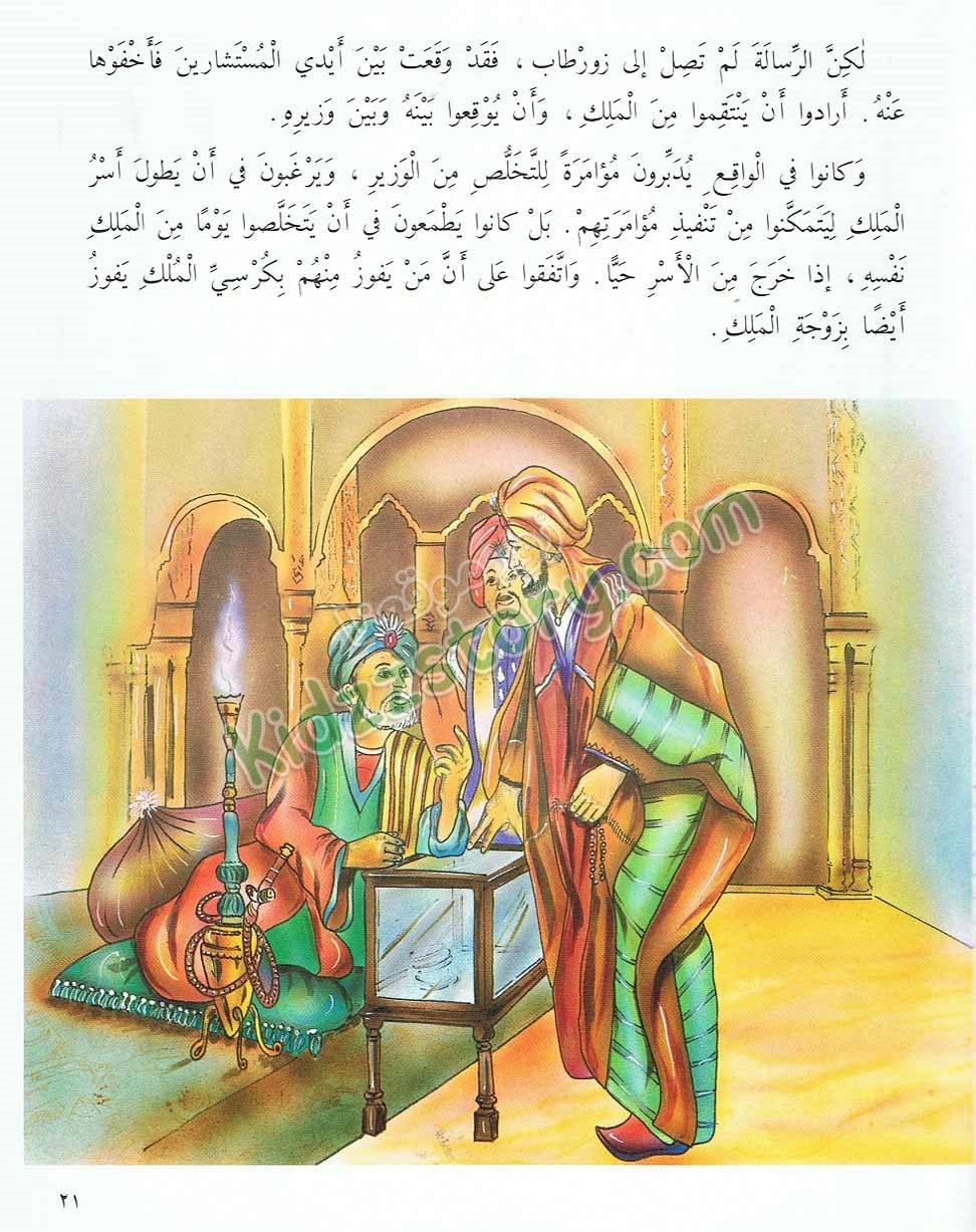 لكن الرسالة لم تصل إلى زورطاب، فقد وقعت بين أيدي المستشارين فأخفوها عنه. أرادوا أن ينتقموا من الملك، وأن يوقعوا بينه وبين وزيره. وكانوا في الواقع يدبرون مؤامرة للتخلص من الوزير، ويرغبون في أن يطول أسر الملك ليتمكنوا من تنفيذ مؤامرتهم. بل كانوا يطمعون في أن يتخلصوا يومًا من الملك نفسه إذا خرج من الأسر حيًا. واتفقوا على أن من يفوز منهم بكرسي الملك يفوز أيضًا بزوجة الملك.
