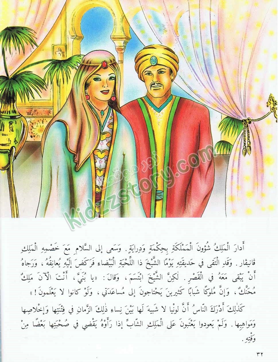 أطرق الملك لحظة يفكر في ما سمع ثم رفع رأسه فلم يجد الشيخ أمامه ولا وجده في أي مكان آخر. عاد إلى قاعة البلاط حائرًا، يفكر في حاله، ثم قال: “كنت أظن أنه ليس على الملك إلا أن يكون ملكًا!”