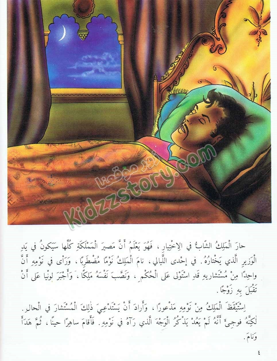 حار الملك الشاب في الاختيار، فهو يعلم أن مصير المملكة كلها سيكون في يد الوزير الذي يختاره. في إحدى الليالي، نام الملك نومًا مضطربًا، ورأى في نومه أن واحدًا من مستشاريه قد استولى على الحكم، ونصب نفسه ملكًا، وأجبر لونيا على أن تقبل به زوجًا.