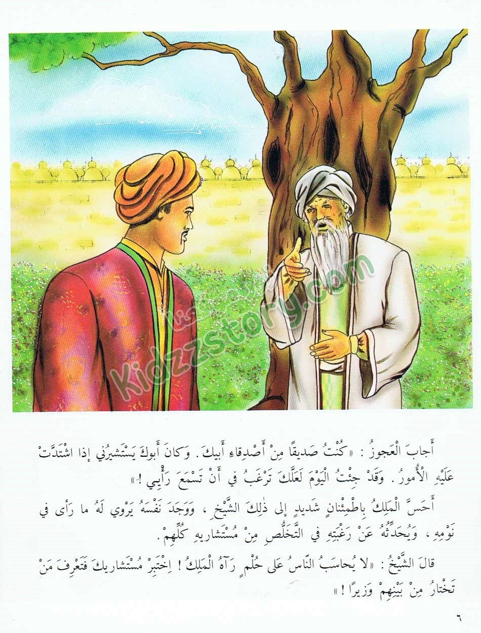 أجاب العجوز: “كنت صديقًا من أصدقاء أبيك. وكان أبوك يستشيرني إذا اشتدت عليه الأمور. وقد جئت اليوم لعلك ترغب في أن تسمع رأيي!”