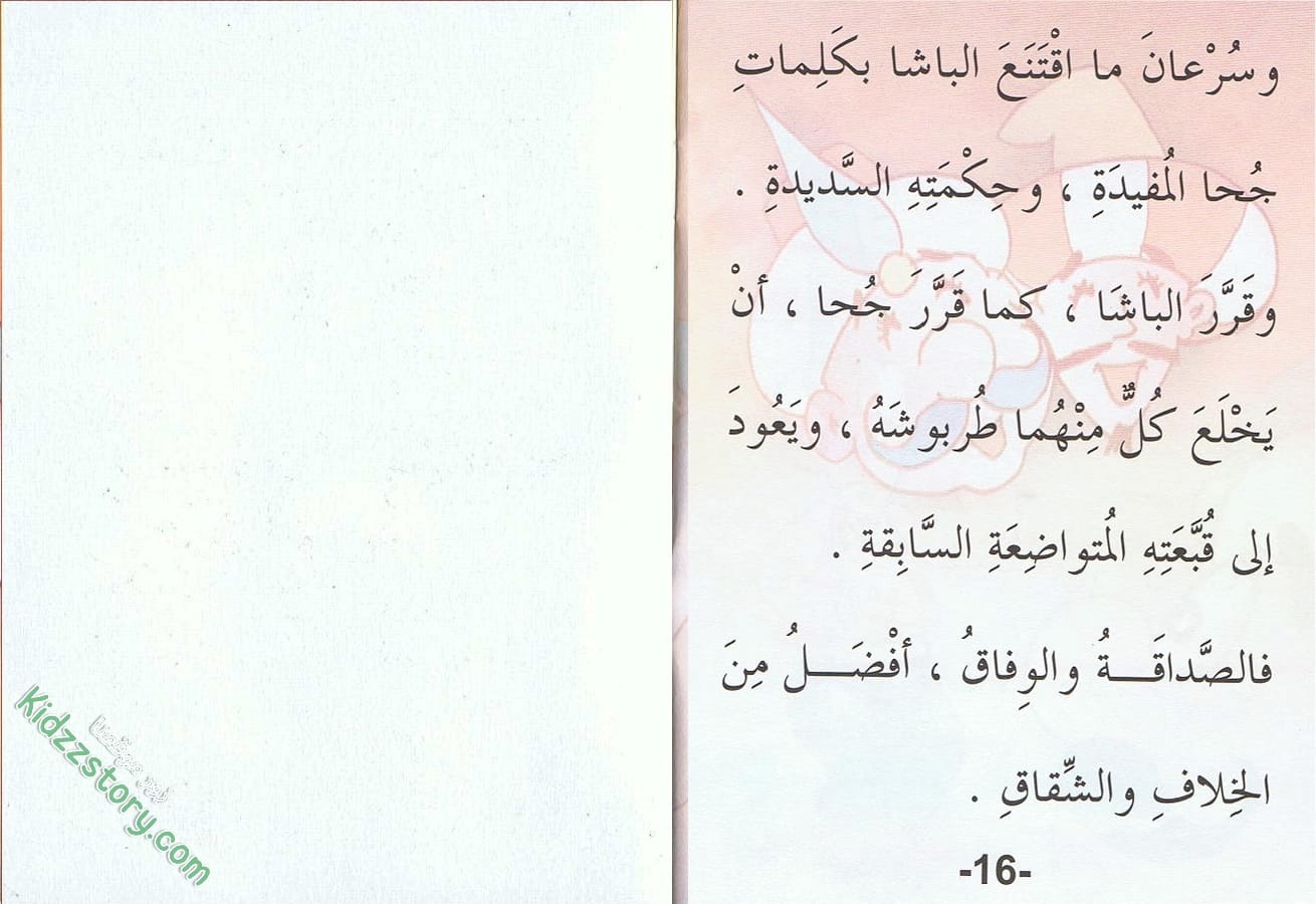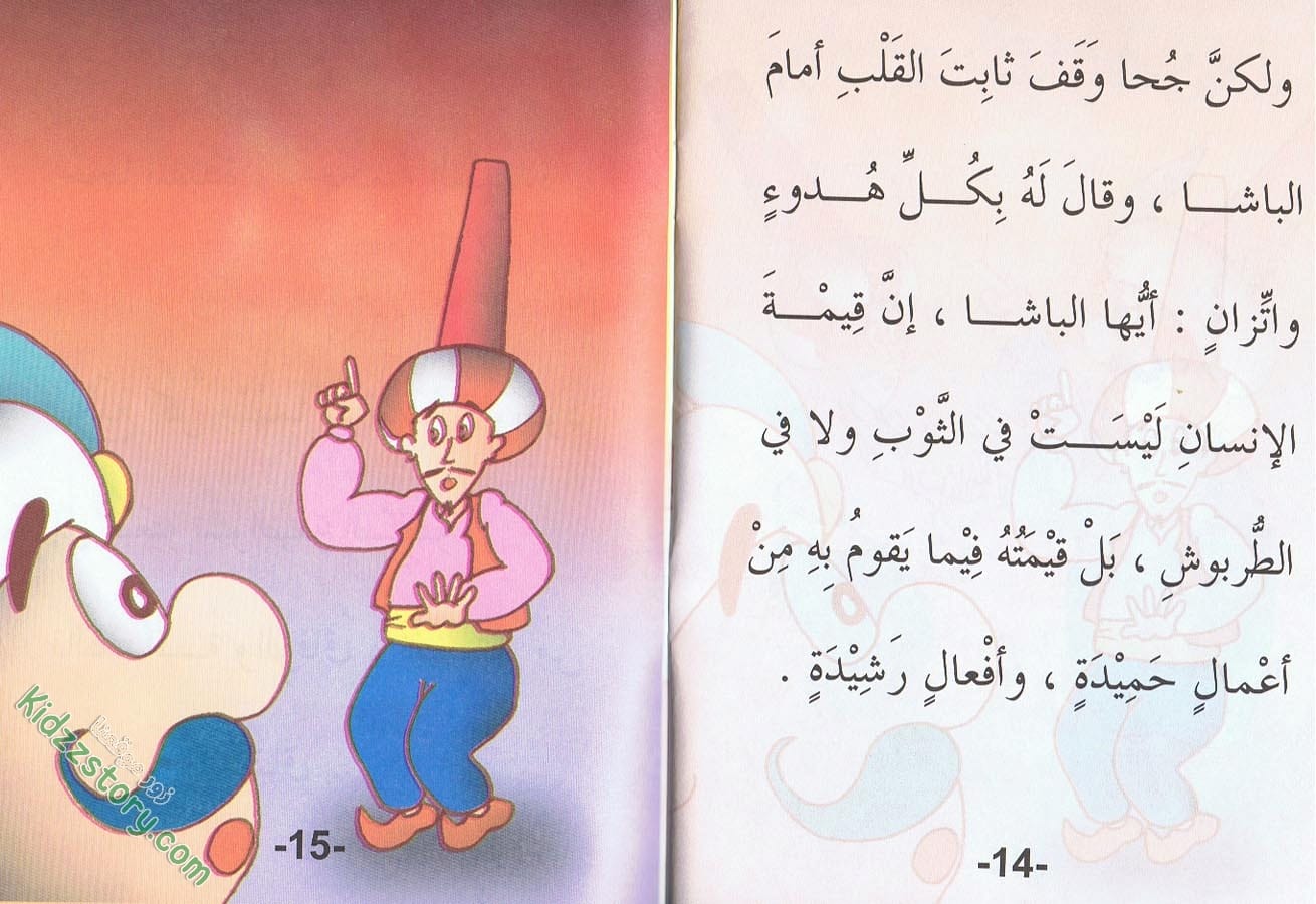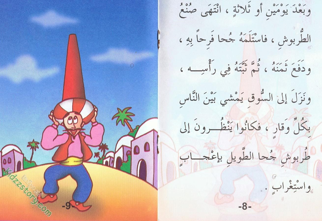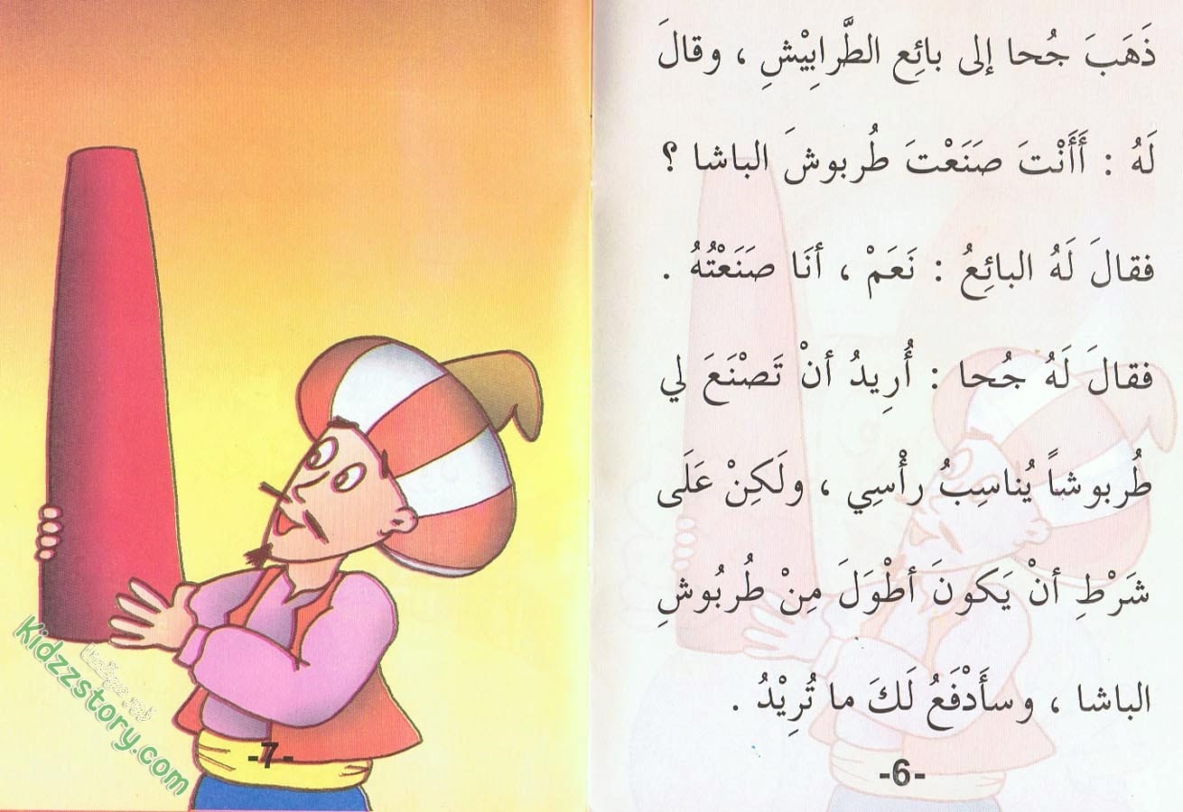 يمر جحا في البستان بدالية قد اخضرت أوراقها، وامتدت أغصانها، وتدلت عناقيد العنب فيها. تاقت نفسه إلى أن يقطف عنقودًا أحمر كبيرًا، قد نضجت حباته، وتراصت بشكل جميل. تمتم بصوت مسموع: “ما أشهى حلاوة هذا العنقود! ولكنه عالٍ! فكيف أتمكن من قطفه؟ لا شك في أن حباته تذوب في الفم كالصمغ قبل المضغ.” ثم راح جحا يمد يديه إلى العنقود فلا يصل إليه.