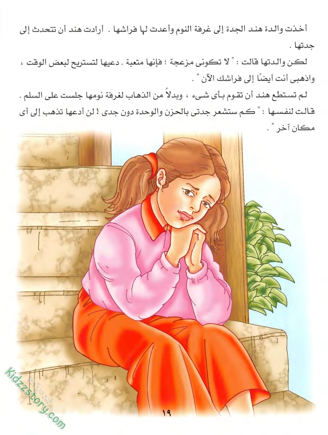 لم تستطع هند أن تقوم بأي شيء، وبدلاً من الذهاب لغرفة نومها جلست على السلم. قالت لنفسها: “كم ستشعر جدتى بالحزن والوحدة دون جدى! لن أدعها تذهب إلى أي مكان آخر”.