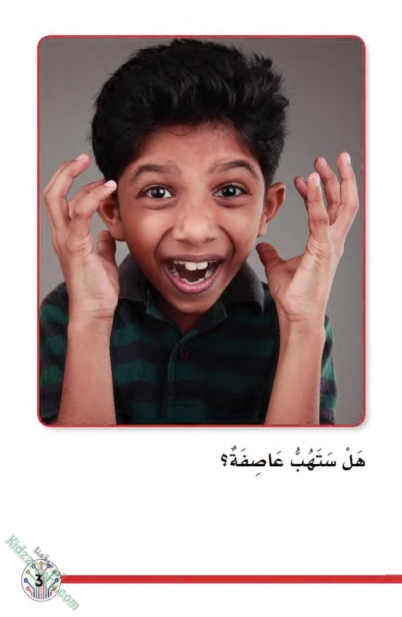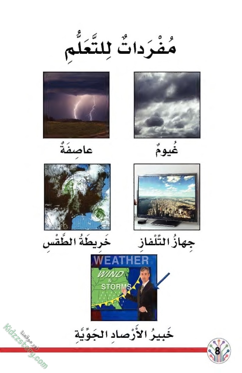 تتحدث القصة عن طفل يلاحظ تغيّر الطقس، فيجد السماء قد تلبّدت بالغيوم الرمادية. للتأكد مما إذا كانت هناك عاصفة قادمة، يشغّل التلفاز ويستمع إلى خبير الأرصاد الجوية وهو يحلّل خريطة الطقس، ليتأكد من أن العاصفة تقترب بالفعل.