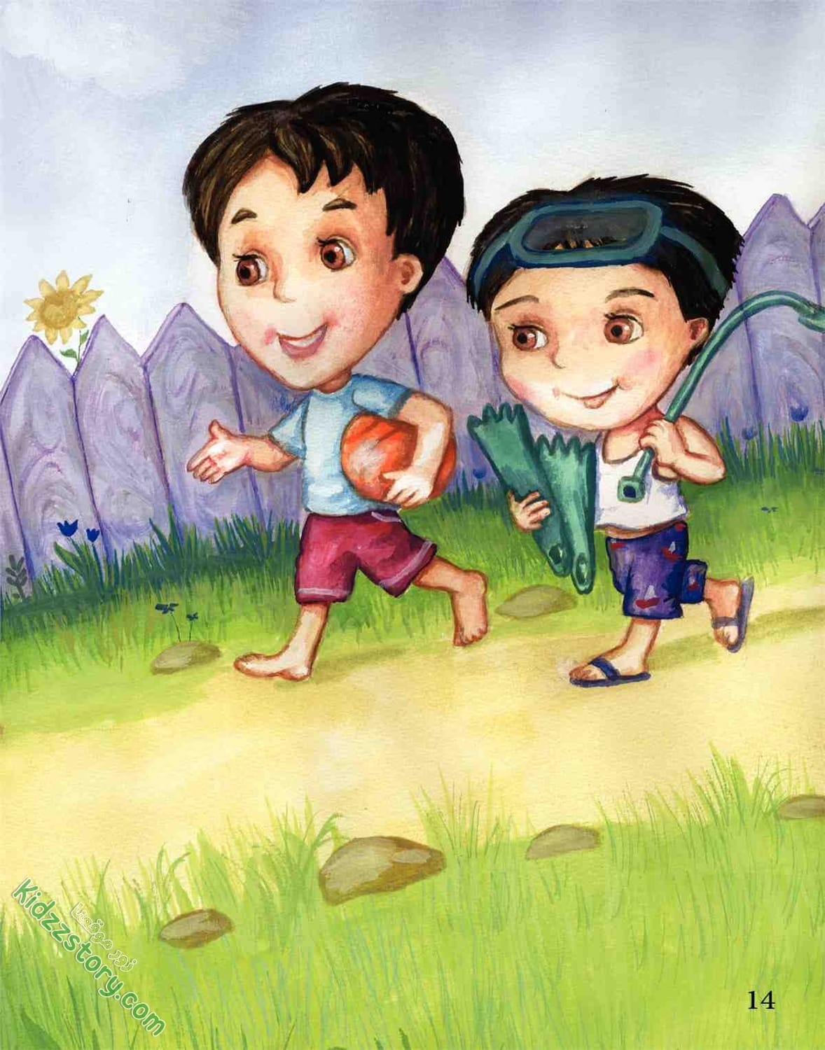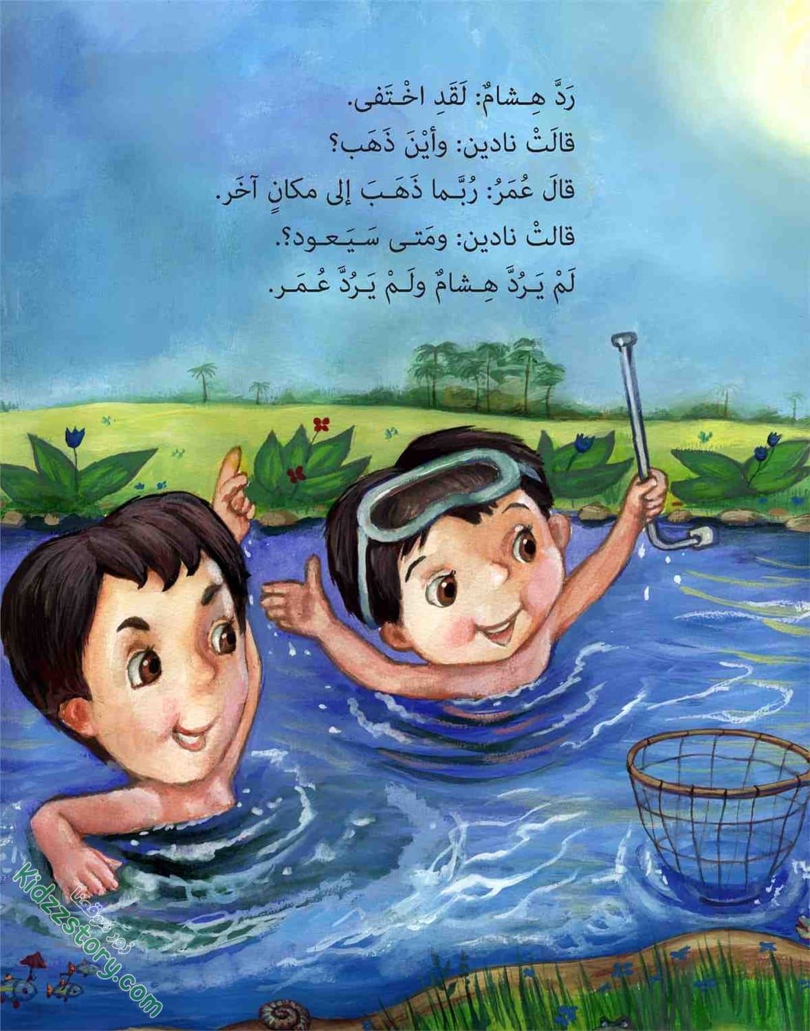 كان هشام وعمر يحسان بالسعادة والنشاط، وهما يسبحان ويتسابقان في مياه البحيرة الملونة بألوان قوس قزح.